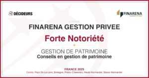 Notre cabinet de conseil en gestion patrimoniale nantais est récompensé du label “Forte Notoriété” dans la catégorie des Meilleurs Conseillers en Gestion de Patrimoine du Grand Ouest par l’agence de notation, “Décideurs Magazine”, véritable figure d’autorité dans le secteur du conseil.